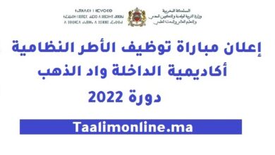 إعلان مباراة توظيف الأطر النظامية بأكاديمية جهة الداخلة وادي الذهب – دورة 2022