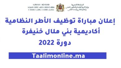 إعلان مباراة توظيف الأطر النظامية بأكاديمية جهة بني ملال خنيفرة – دورة 2022